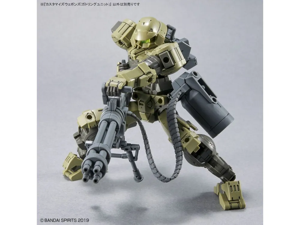 Personnalisez vos unités de 30Minutes Missions avec cette unité Gatling ! En interchangeant les pièces, vous pouvez alterner entre le mode Gatling et le mode Railgun. La ceinture de l’arme est faite de matériaux plus souples pour un sens accru du réalisme. Des joints de 3 mm sont utilisés pour une compatibilité optimale. Commandez maintenant !