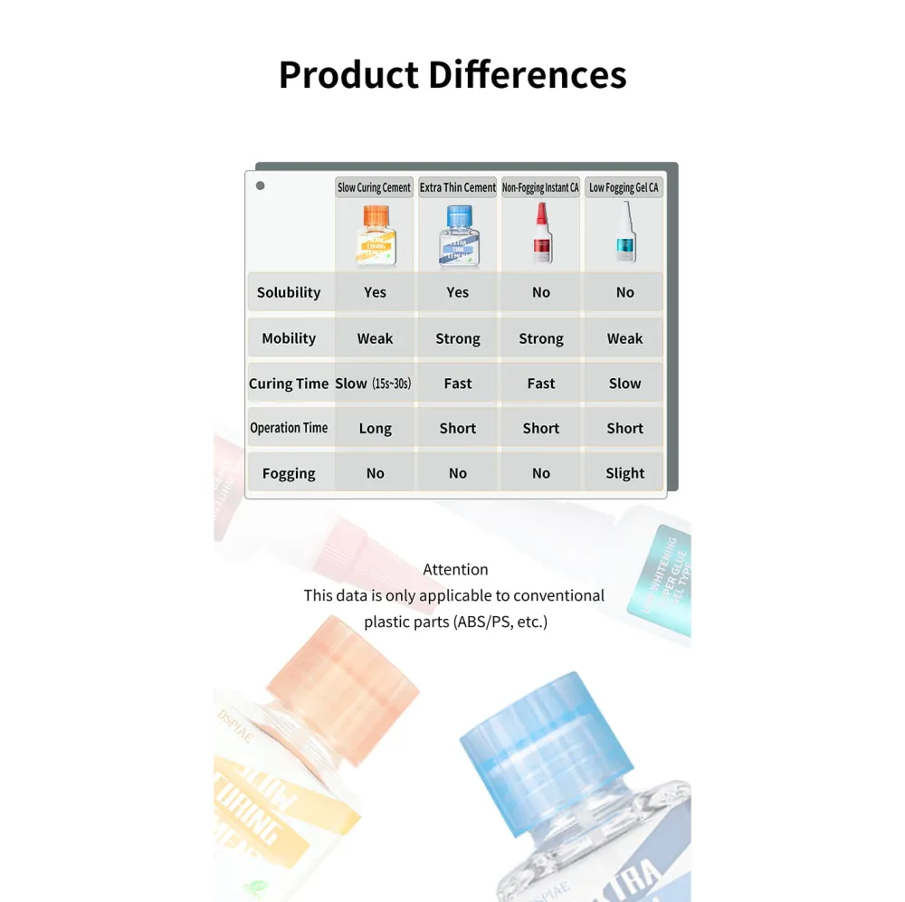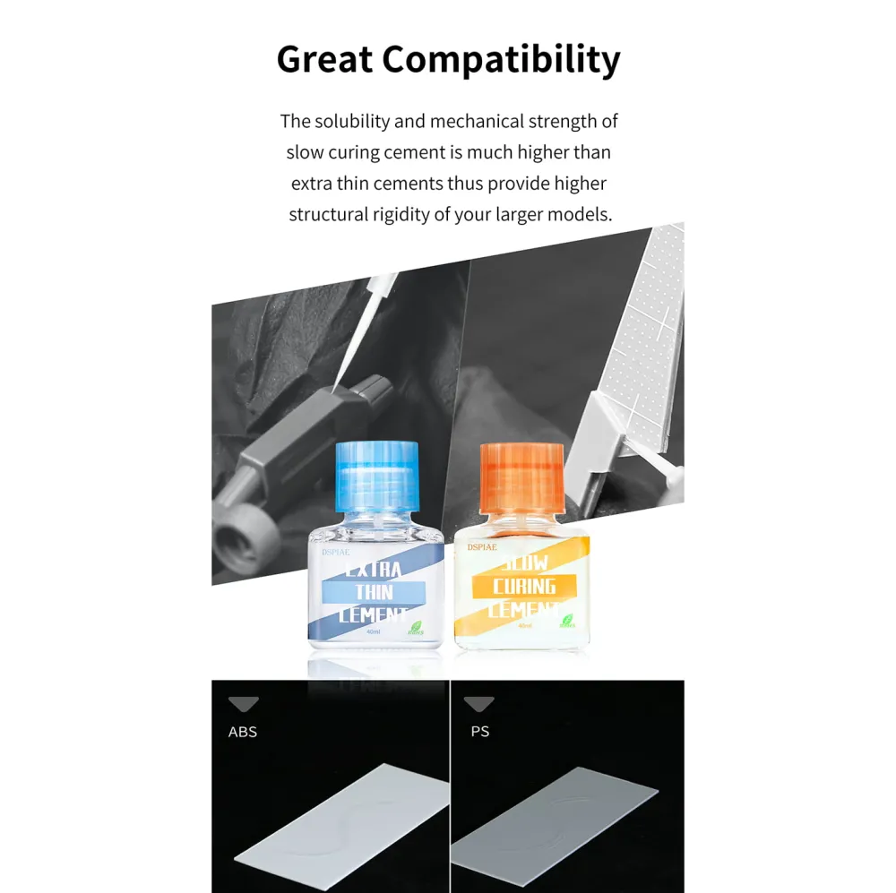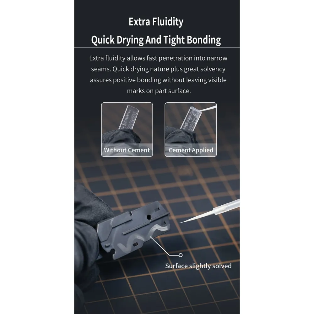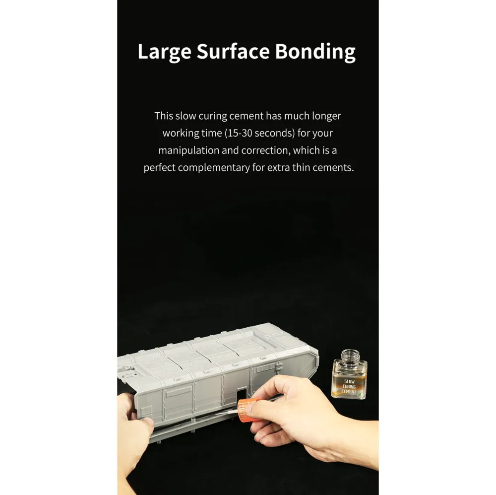 Ce ciment à durcissement lent est idéal pour le collage de grandes surfaces, ainsi que pour le collage point à point de petites pièces en plastique