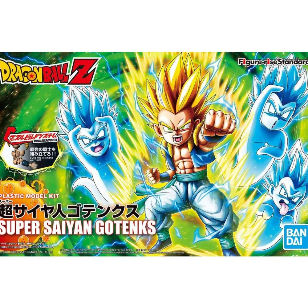 Tout droit sorti de , Super Saiyan Gotenks débarque dans la gamme Figure-Rise Standard ! La fusion de Goten et Trunks dans leur forme super saiyan avec mains et effets d’attaques inclus !
