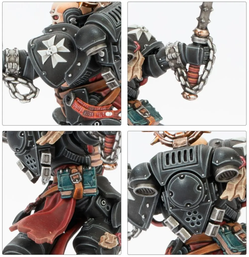Les Exécrateurs incarnent la fureur des serments de leurs frères d'armes – des prêtres-guerriers fanatiques qui mènent les Black Templars dans des charges meurtrières. Ils prêchent que la guerre est la plus sacrée des chapelles pour un guerrier, chaque coup asséné de leur crozius arcanum étant ponctué d'insultes haineuses et de sermons hurlés.Contenu du kit :Ce kit en plastique multipièces permet de construire un Exécrateur, un leader fanatique pour vos armées Black Templars dans Warhammer 40,000. Ce combattant redoutable est armé d'un crozius arcanum avec choix entre deux têtes de masse différentes. Son autre main peut être équipée :