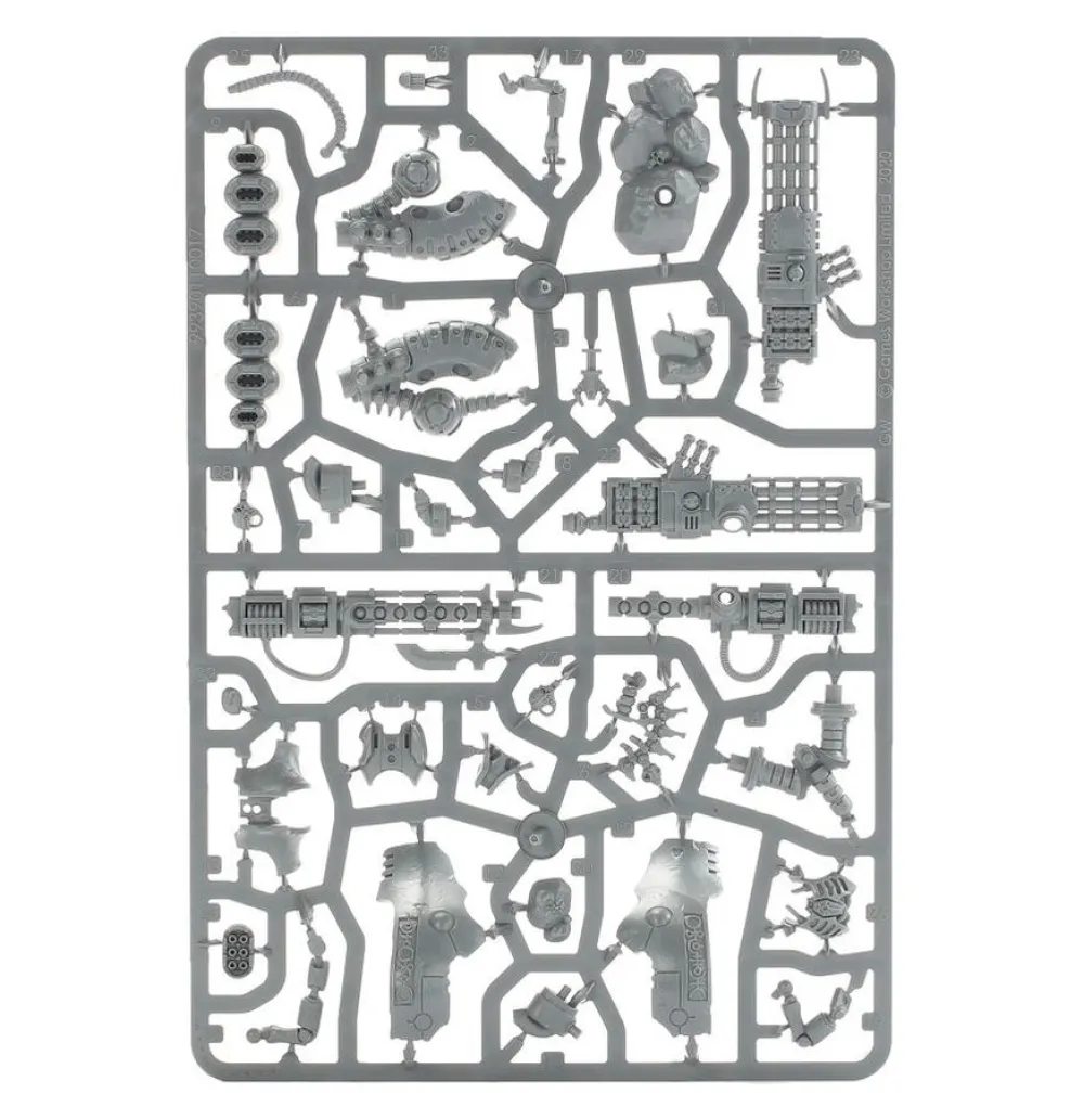 Les cultes de Destroyers n'hésitent pas à sacrifier leur intégrité physique afin de s'optimiser pour le massacre. Les Destroyers Lourds Lokhust flottent au combat, portés sur un châssis à répulseurs, et les membres antérieurs soudés à un destructeur gauss ou à un exterminateur d'hostiles pour mieux décimer l'ennemi par des salves tirées de loin.Que vous désiriez faucher l'infanterie adverse ou percer sans peine le blindage des chars, il vous faut un Destroyer Lourd Lokhust. Cette plate-forme armée rapide s'associe à merveille aux unités de Destroyer, ou bien elle peut s'utiliser seule pour conférer un surcroît de puissance de feu à n'importe quelle armée.Ce kit permet d'assembler un Destroyer Lourd Lokhust. Prévu pour s'emboîter, il s'assemble sans colle, et le kit vous propose un choix de têtes et d'armes. Il est fourni en 33 composants plastique, plus un socle rond de 60mm.