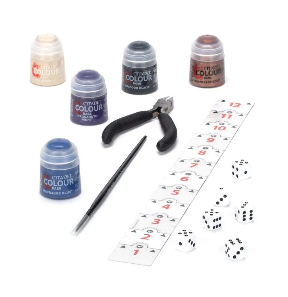 Dans les ténèbres du lointain futur, il n'y a que la guerre.Sur les mondes isolés de l'Imperium de l'Humanité, dans une galaxie déchirée par des tempêtes warp et des conflits incessants, les armées de l'Humanité luttent pour la survie. Tandis que l'Imperium est déjà au bord de l'annihilation, les flottes-ruches tyranides surgissent du glacial vide intergalactique. Les Space Marines sont la dernière ligne de défense entre cette vorace menace extraterrestre et les mondes assiégés du domaine de l'Empereur.Plongez dans le 41e Millénaire avec ce lot plein à craquer. Cette boîte est un très bon moyen de vous familiariser avec le hobby en assemblant et en peignant des figurines époustouflantes avant de jouer vos premières parties. Elle contient deux sets de figurines à emboîter, un set d'outils hobby et de peintures, un tapis de jeu, des guides pratiques, des pions et des marqueurs de terrain, ainsi que tous les dés et les outils dont vous avez besoin pour jouer. Choisissez les nobles Space Marines ou les nuées de Tyranides, laissez l'autre armée entre les mains d'un ami ou d'un membre de votre famille et livrez bataille pour des heures de loisir. Si vous voulez essayer Warhammer 40,000, c'est l'occasion. C'est également un bon moyen d'agrandir votre collection existante.Cette boîte contient:1x Manuel de Set d'Initiation Warhammer 40,000 à couverture souple de 48 pages – Contient des guides d'assemblage, des tutoriels de règle et des missions d'entraînement pour tout prendre en main sans maux de tête16x figurines Citadel en plastique à emboîter – Cette boîte contient deux sets de figurines à assembler et à peindre avant de les déployer sur la table de jeu. Elles sont conçues pour être assemblées sans colle pour que vous puissiez commencer à jouer en un clin d'œil. Ces figurines sont fournies avec leurs socles appropriés, et la boîte contient:5x Space MarinesDes soldats génétiquement améliorés et créés pour la guerre. Leurs talents déjà mortels sont renforcés par une armure énergétique qui amplifie leur force et leur résistance, et par des armes brutales conçues pour annihiler l'ennemi.- 5x Marines Infernus: Des troupes lourdement protégées maniant de puissantes armes à flamme pour repousser les hordes d'ennemis11x TyranidesDes créatures extraterrestres dérangeantes poussées par une conscience gestaltique. Leur seul désir est de dévorer toute vie, d'absorber et de convertir la biomasse en des créatures encore plus terrifiantes.- 10x Termagants: Des hordes cavaleuses de créatures tyranides simples, équipées d'armes qui tirent des projectiles vivants- 1x Nuée de Voraces: De petites bêtes chargées d'achever les ennemis affaiblis et d'en nettoyer les os1x tapis de jeu double face de 30" par 22,4" – Un tapis de jeu en papier pliable qui propose un champ de bataille différent sur chaque côté.1x règle graduée et 6x dés à six faces – Ces accessoires essentiels sont utilisés au cours des parties de Warhammer 40,000 pour le mouvement, le tir, le combat au corps à corps et bien plus encore.22x pions et marqueurs de terrain en carton – Ces pions représentent des murs et des objectifs, ainsi que des pions d'activation pour suivre les tours.1x Pince de Dégrappage – L'outil idéal pour retirer vos nouvelles figurines de leurs grappes.1x Pinceau Starter Citadel Colour – Un très bon pinceau polyvalent qui vous aidera à préparer vos figurines au combat.5x pots de peinture Citadel Colour de 12ml – Les couleurs idéales pour préparer vos figurines pour le jeu aux couleurs des Ultramarines et de la Flotte-ruche Léviathan, dont:- 1x Abaddon Black- 1x Wraithbone- 1x Balthasar Gold- 1x Naggaroth Night- 1x Macragge BlueCes figurines sont fournies non peintes et nécessitent assemblage – nous recommandons d'employer la peinture Citadel. Informations complémentaires