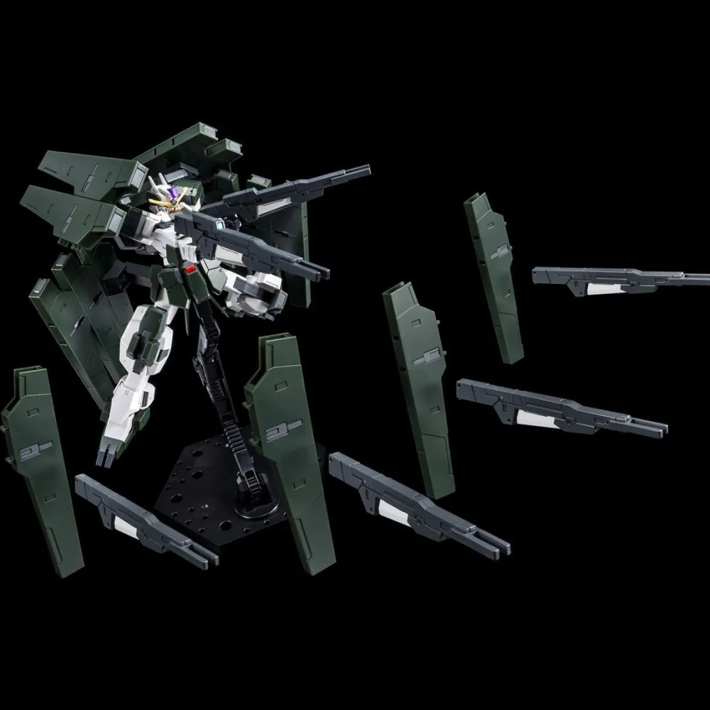 From « Mobile Suit Gundam 00 -A wakening of the Trailblazer-« It is possible to reproduce the heavy equipment form at the time of the final battle specification of Gundam Savagna that appeared at the time of the decisive battle. The backpack and arm equipped with the added GN holster bit, GN Rifle Bit II are reproduced with new modeling.