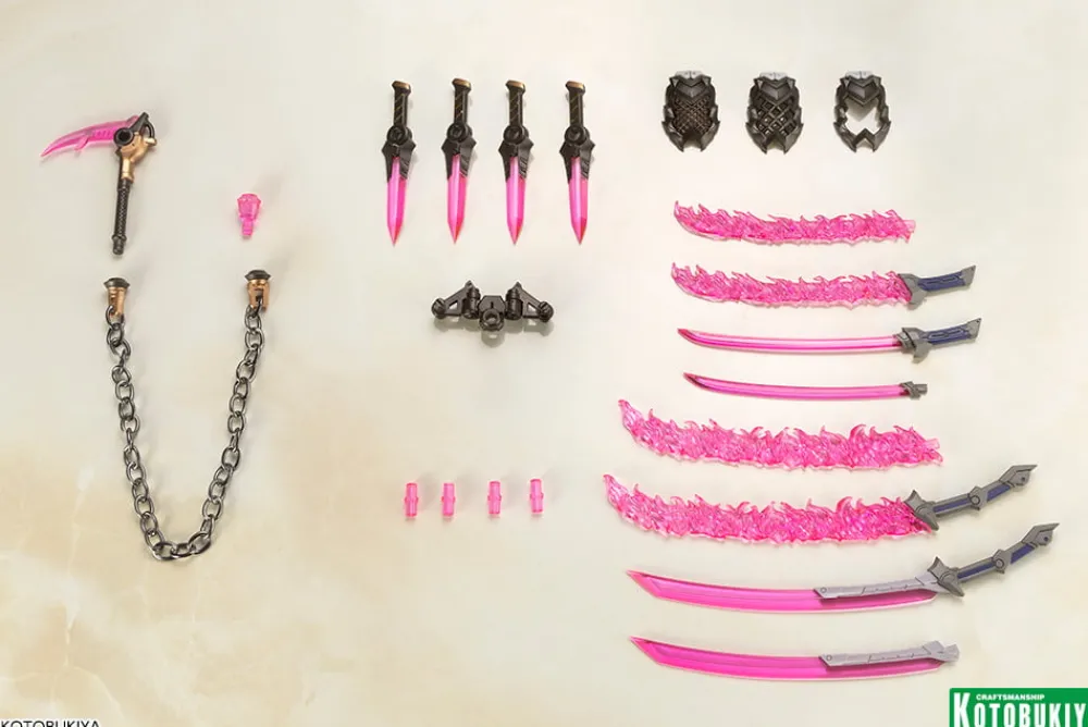 ・Le kit de modélisme comprend cinq jeux de pièces de main en PVC. Les mains et leurs articulations peuvent être échangées avec d’autres kits de maquettes Frame Arms Girl.