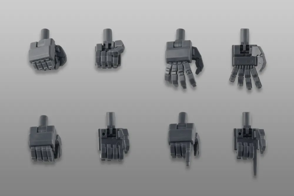 - Les parties de la main utilisent des articulations pivotantes. « FA Hand 2 » sont inclus qui comprennent des pièces de main de maintien d’arme. Les utilisateurs peuvent attacher des « Finger Machete » aux bras s’ils le préfèrent.