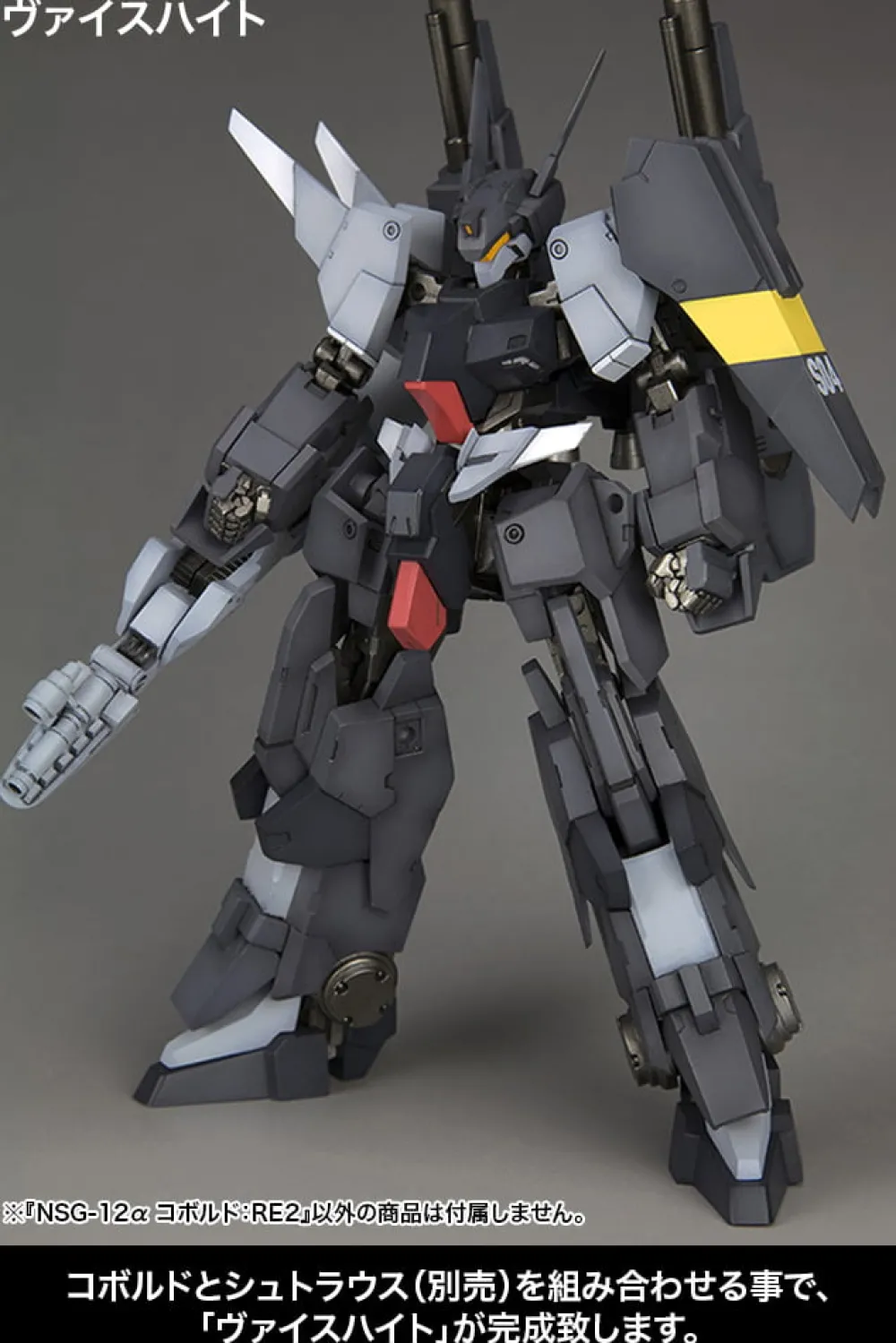 De plus, en combinant avec le dernier NSG-12α KOBOLD:RE2, les utilisateurs peuvent créer les bras de cadre héroïques de type humanoïde, NSG-04δ WEISHEIT ! Ce modèle présente ainsi le nouveau mécanisme de combinaison au sein de la structure du cadre.