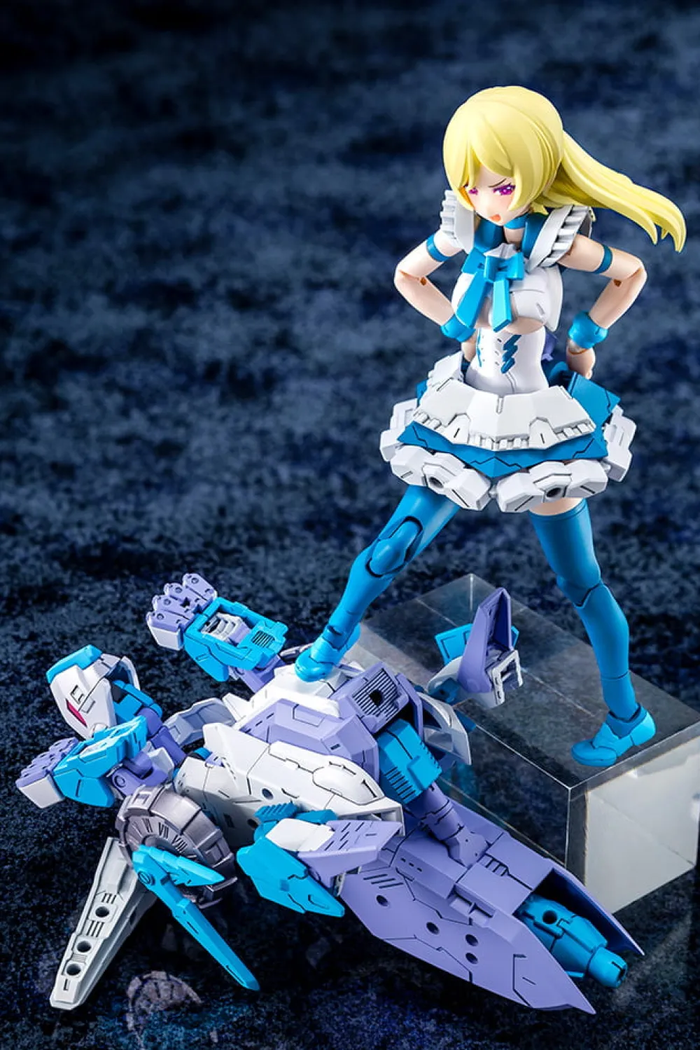 chacun avec une silhouette complètement différente. Le modèle est livré avec trois parties faciales pré-peintes. Comme les autres modèles de la série Megami Device, ce personnage se compose d’un corps principal « machinika » conçu par Masaki Apsy,