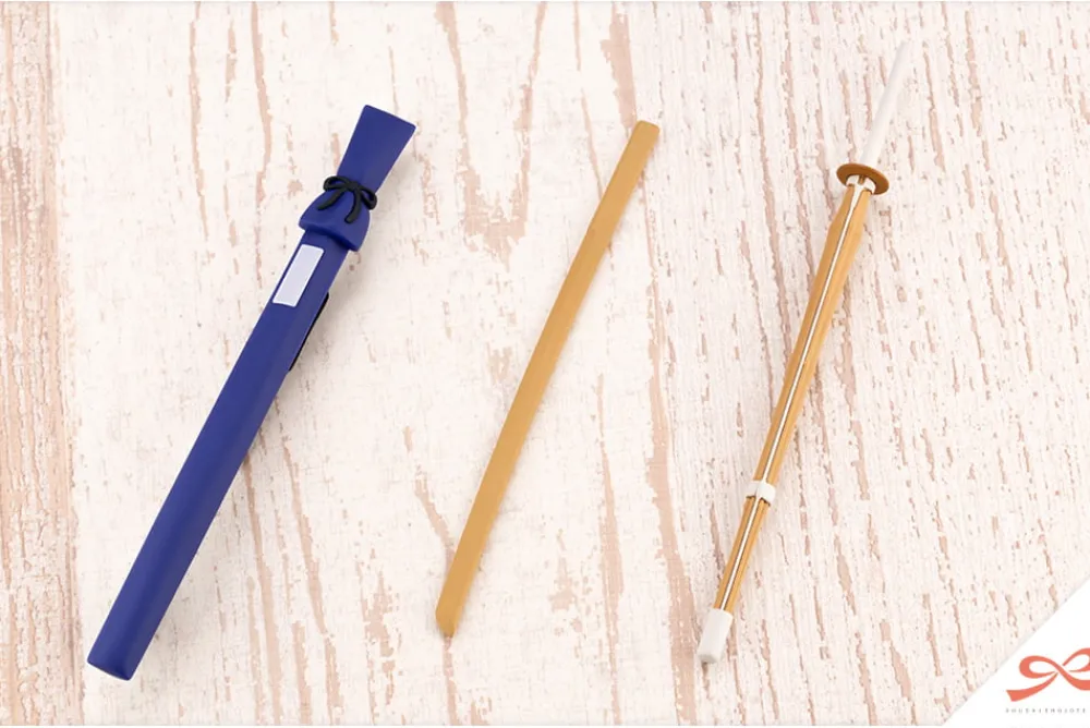 Contrairement à Noble Rose, son uniforme est d’un bleu vif. Dans ses mains se trouvent… des épées en bambou et en bois !