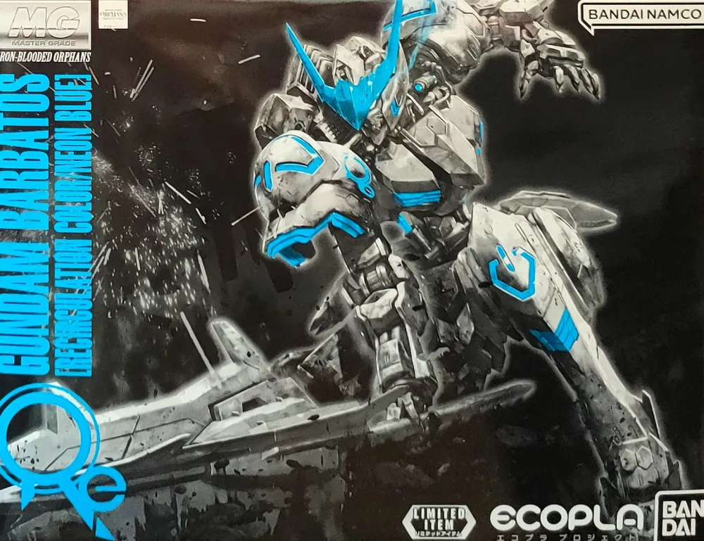 Le MG 1/100 Gundam BARBATOS (Recirculation Color / Neon Blue) fait parti des productions liés au projet de Bandai visant à récupérer les grappes en plastique dans des points de collecte afin de les recycler et réutiliser pour produire de nouvelles maquettes.. Le plastique noir de ce dernier est donc issu de ce processus de recyclage.