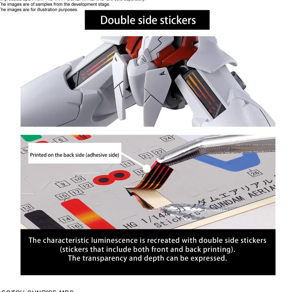 Le kit HG 1/144 GUNDAM AERIAL contient :
