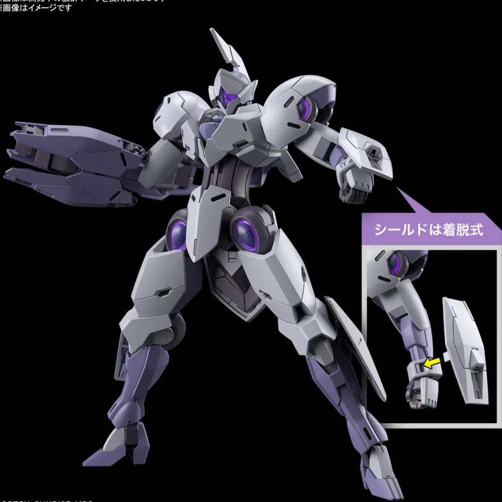 Un grand armement déployable est inclus sur le bras droit, et un petit bouclier sur le bras gauche. La gauche et la droite peuvent être attachées aux parties de poutre moulées transparentes.