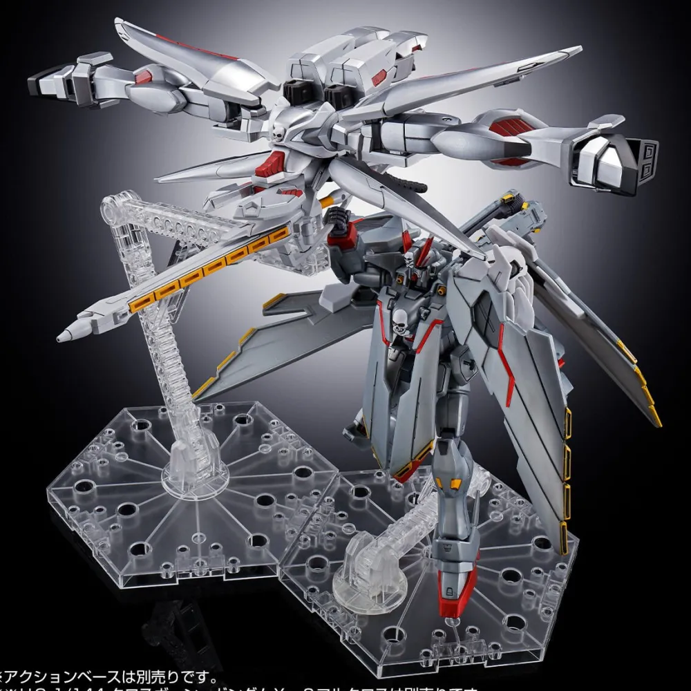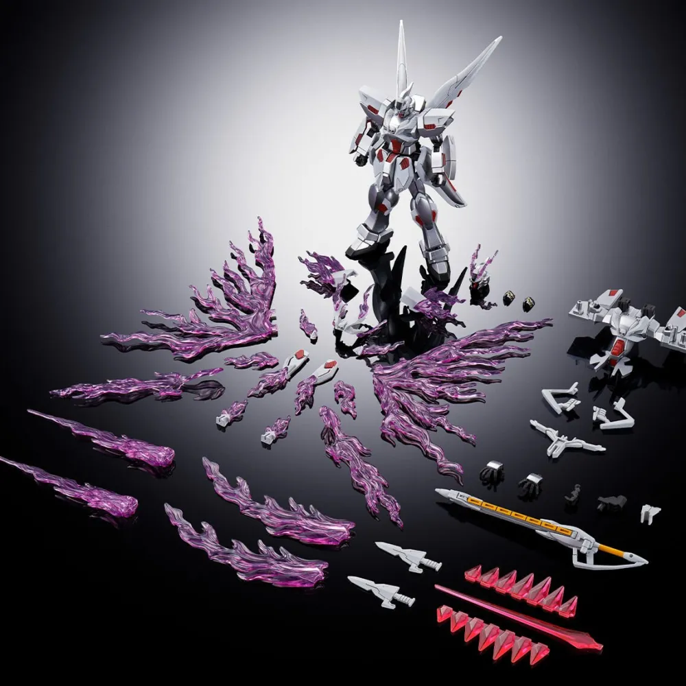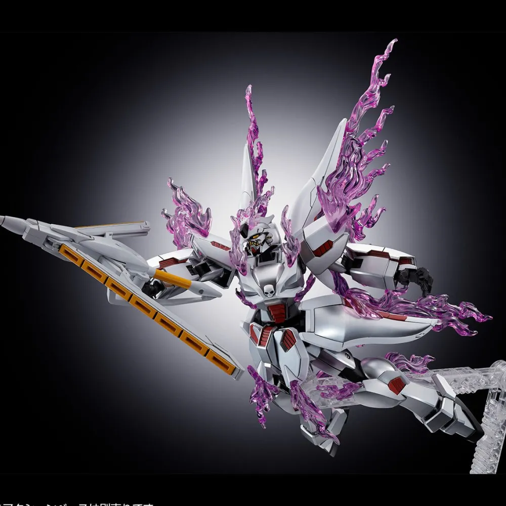 De la série de mangas Mobile Suit Crossbone Gundam : Ghost , voici le Ghost gundam ! Avec ses armures argentées et ses effets de flammes violettes « phantom light ». Le kit partage certains de ses moules avec le HGUC Phantom Gundam.