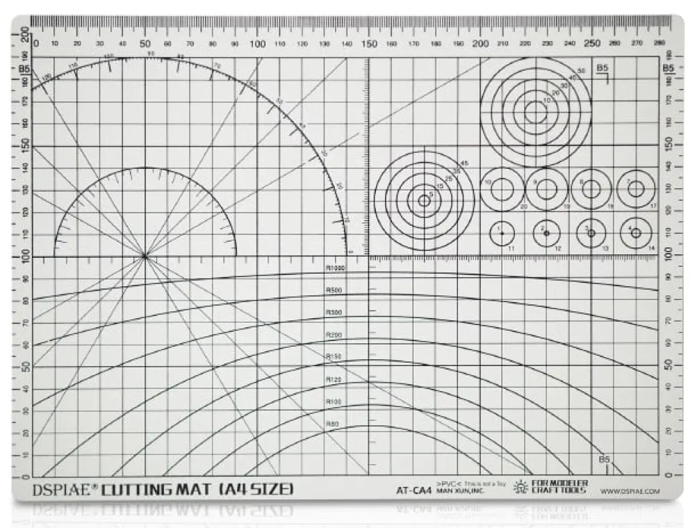Le tapis de découpe est conçu pour la découpe de modèles, d’épaisseur de 2 mm, avec une plaque d’échelle et une règle sur la surface.