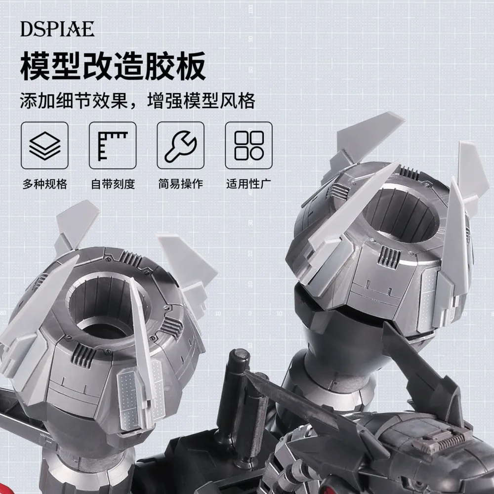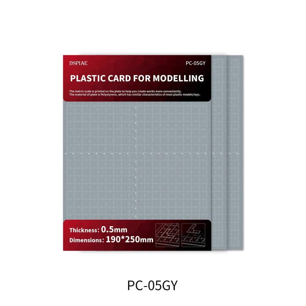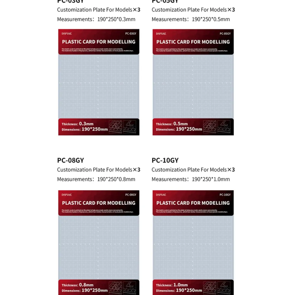 La carte plastique graduée « DSPIAE PC-GY Customization plate for models » pour personnaliser ou concevoir des pièces pour vos maquettes. Elle est disponible en 4 épaisseurs ;
