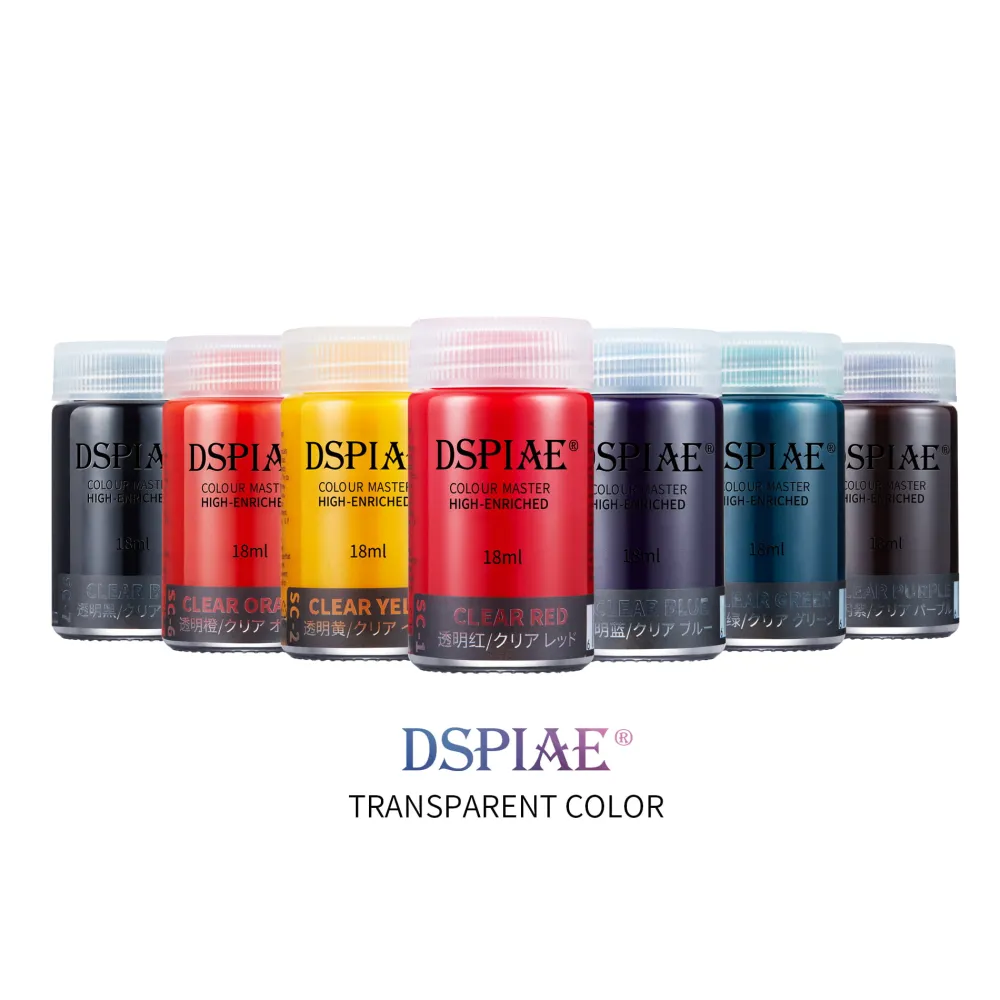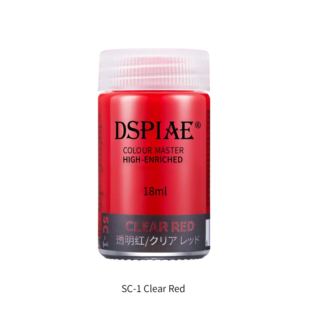 Le pot de la peinture DSPIAE SC-1 CLEAR RED 18ml est en verre transparent de haute qualité pour identifier facilement la couleur du produit.