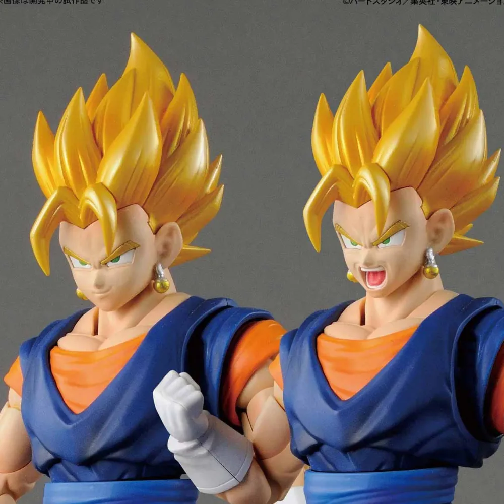 La prochaine étape de la série de figurines standard « Dragon Ball Z » est la fusion entre Goku et Vegeta à l’aide des boucles Potara, le Super Saiyan Vegetto !