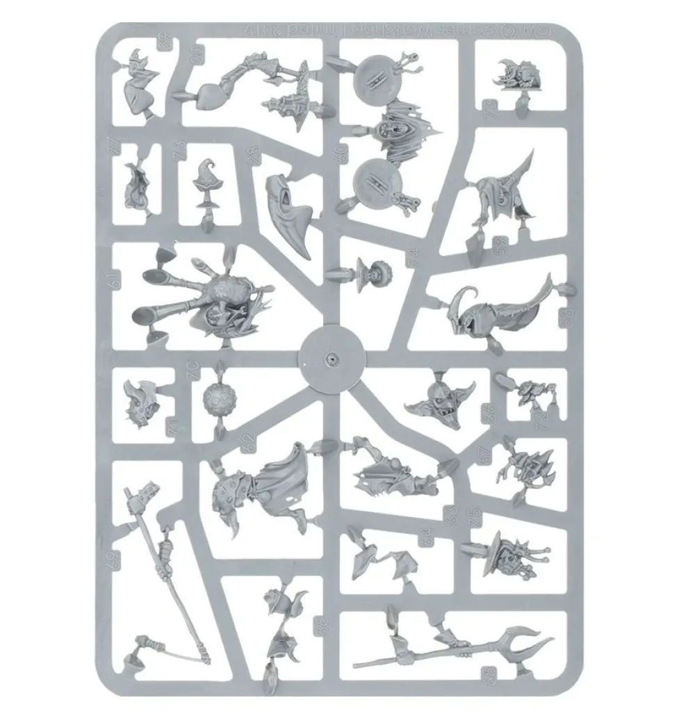 Squigs! Ces méchantes créatures se résument à des gueules sur pattes à l'attitude déplorable, qu'on redoute à travers les Royaumes Mortels pour leur appétit vorace et que les Gloomspite Gitz emploient souvent au front.Ces petits monstres sont bienvenus dans votre armée grâce à leur incroyable capacité offensive – il suffit de les orienter vaguement dans la direction de ce que vous voulez leur faire mordre, et de donner l'assaut. Vous pouvez même à votre guise en aligner toute une armée en jeu égal, les Squig Herds étant une option de Ligne pour les armées dotées d'un général Moonclan. Imaginez la tête de vos adversaires…Ce kit comporte tout le nécessaire pour monter un troupeau de 10 squigs, au riche éventail de faciès personnalisables. Il y a aussi deux Squig Herders pour motiver les Squig Herds, à choisir et monter parmi quatre variantes possibles. Il y a aussi des accessoires de soclage, dont un squig escargot...Ce kit est fourni en 77 composants, plus 12 socles ronds de 25mm.Ces miniatures sont fournies non peintes et nécessitent un assemblage.