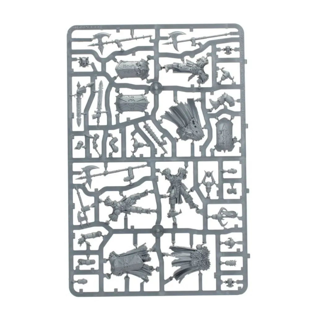 Les Guerriers du Chaos sont le fléau des Royaumes Mortels, engoncés dans l'acier infernal et bouffis de sombres bénédictions. Des légions entières de ces tueurs en armure marchent au combat pour mériter la faveur de leurs dieux, liés par le sang au service d'un puissant seigneur de guerre. Chaque Guerrier du Chaos vaut plusieurs mortels inférieurs, et tous aspirent à devenir encore plus puissants.Ce kit plastique permet d'assembler 10 Guerriers du Chaos, le noyau en armure des légions de l'Élu Éternel, aussi formidables en défense que terrifiants en attaque. Chaque Guerrier du Chaos porte un bouclier runique du Chaos et peut porter un large choix d'armes meurtrières (une épée, une hache, une masse ou un marteau) ou une longue hallebarde ensorcelée. Ce kit fournit également de quoi assembler une figurine comme Aspirant Champion avec une arme cruelle unique et un choix de têtes. Vous pourrez également assembler une figurine en Sonneur de Cor et une autre en Porte-étendard avec un choix de deux bannières et deux symboles du Chaos.Ce kit contient une large variété de casques, têtes nues, poses, boucliers runiques, armes et têtes de hallebardes différents et parfaitement interchangeables. Cela vous permet d'être certain que vos Guerriers du Chaos sont totalement uniques, quelle que soit la taille de votre légion du Chaos.Ce kit est composé de 97 éléments en plastique et est fourni avec 10x socles ronds Citadel de 32 mm. Ces figurines sont fournies non peintes et nécessitent assemblage – nous recommandons d'employer la Colle Plastique Citadel et la peinture Citadel.