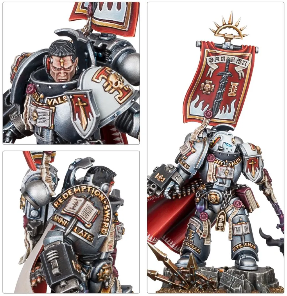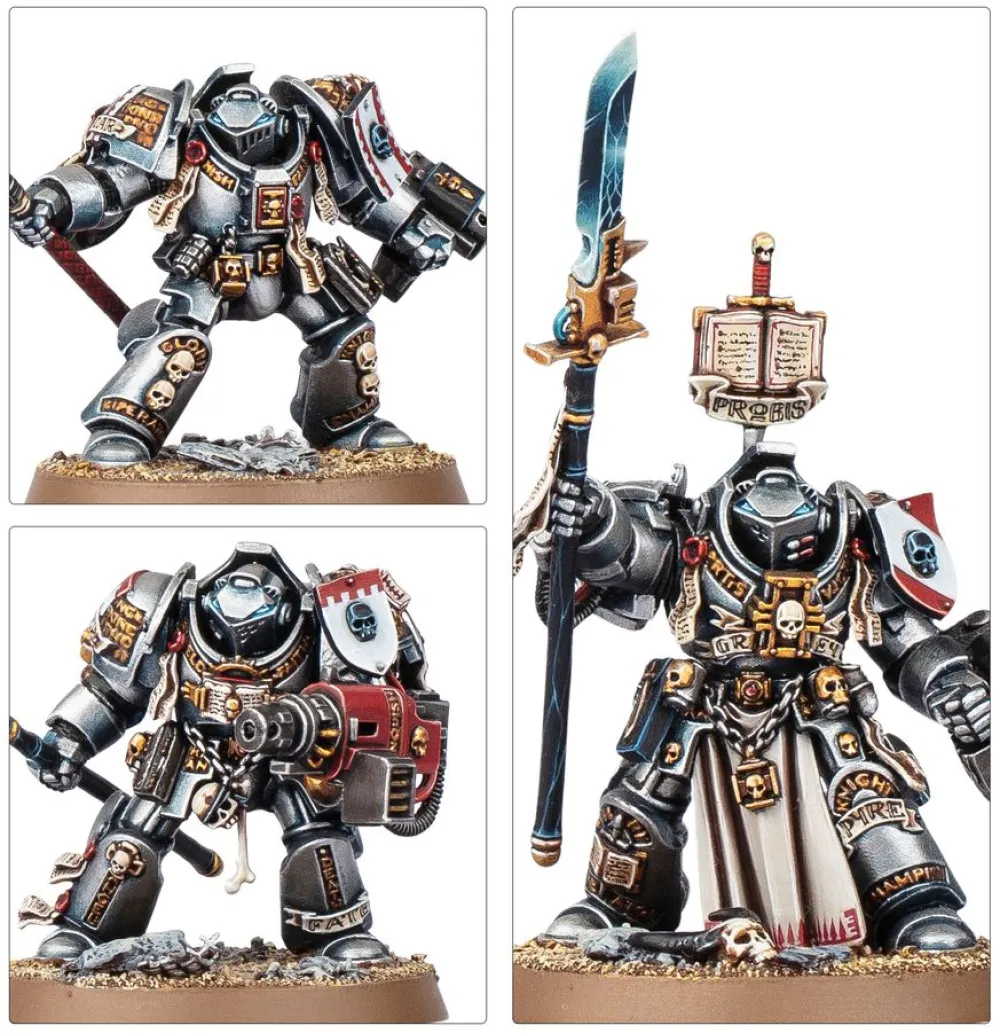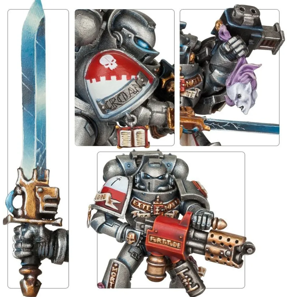 Les Terminators de la Confrérie incluent des pièces pour un Justicier, un Porte-étendard ou un Apothicaire, avec options d'incinérateur, psilenceur ou psicanon. Leurs armes de force Némésis comprennent aussi une canne. Peuvent être assemblés en Escouade Paladin.