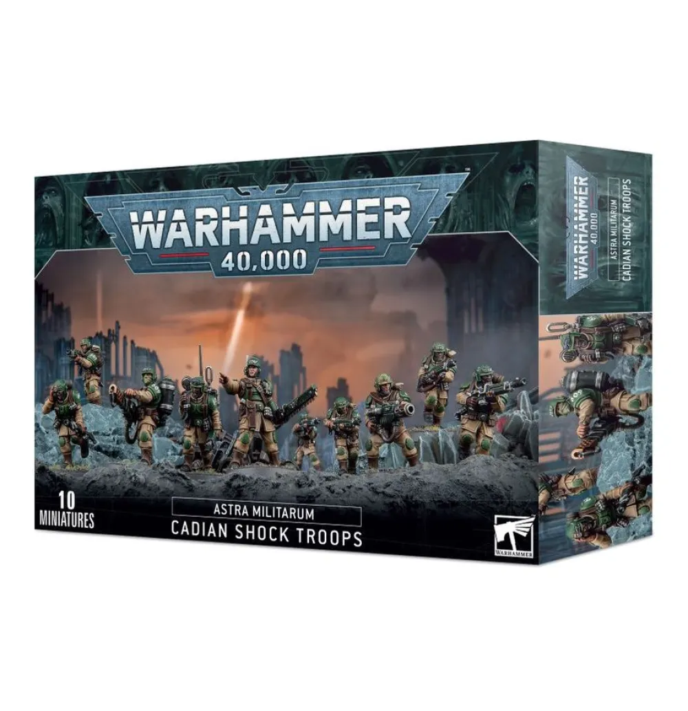 Soldats nés, les Troupes de Choc de Cadia commencent leur formation militaire dès qu'elles ont l'âge de tenir un fusil. De longues années d'entraînement font d'eux des tireurs d'élite, doués à la fois pour les défenses tenaces et les assauts éclair. Les Troupes de Choc Cadiennes sont considérées par beaucoup comme les soldats impériaux idéaux, d'innombrables régiments étant forgés à leur image.Ce kit plastique permet d'assembler 10 Troupes de Choc Cadiennes, le noyau de nombreux régiments de l'Astra Militarum. Chaque Soldat de Choc est armé de grenades Frag et d'un loyal fusil laser. Ils sont menés par un Sergent équipé d'un fusil d’assaut à chargeur tambour ou d'une épée tronçonneuse complétée soit par un pistolet laser, soit par un pistolet bolter. Ce kit contient également un choix d'armes spéciales pour équiper vos Troupes de Choc, du lance-flammes au lance-grenades en passant par le fuseur et le fusil à plasma, ainsi qu'un émetteur vox pour les communications sur le champ de bataille.Vous trouverez également toutes sortes d'options esthétiques pour garantir que vous n'aurez pas deux escouades identiques, grâce à des poses variées, plus de 20 têtes différentes, des sacs de sable, des couteaux de combat, une bêche, un casque en surplus et plein de sacs de couchage.Ce kit est composé de 131 éléments en plastique et est fourni avec 10x socles ronds Citadel de 25 mm. Il contient également une Planche de Décalcomanies d'Infanterie de l'Astra Militarum avec 597 décalcos proposant des numéros, des marquages d'escouade et l'héraldique régimentaire cadienne. Ces figurines sont fournies non peintes et nécessitent assemblage – nous recommandons d'employer la Colle Plastique Citadel et la peinture Citadel.