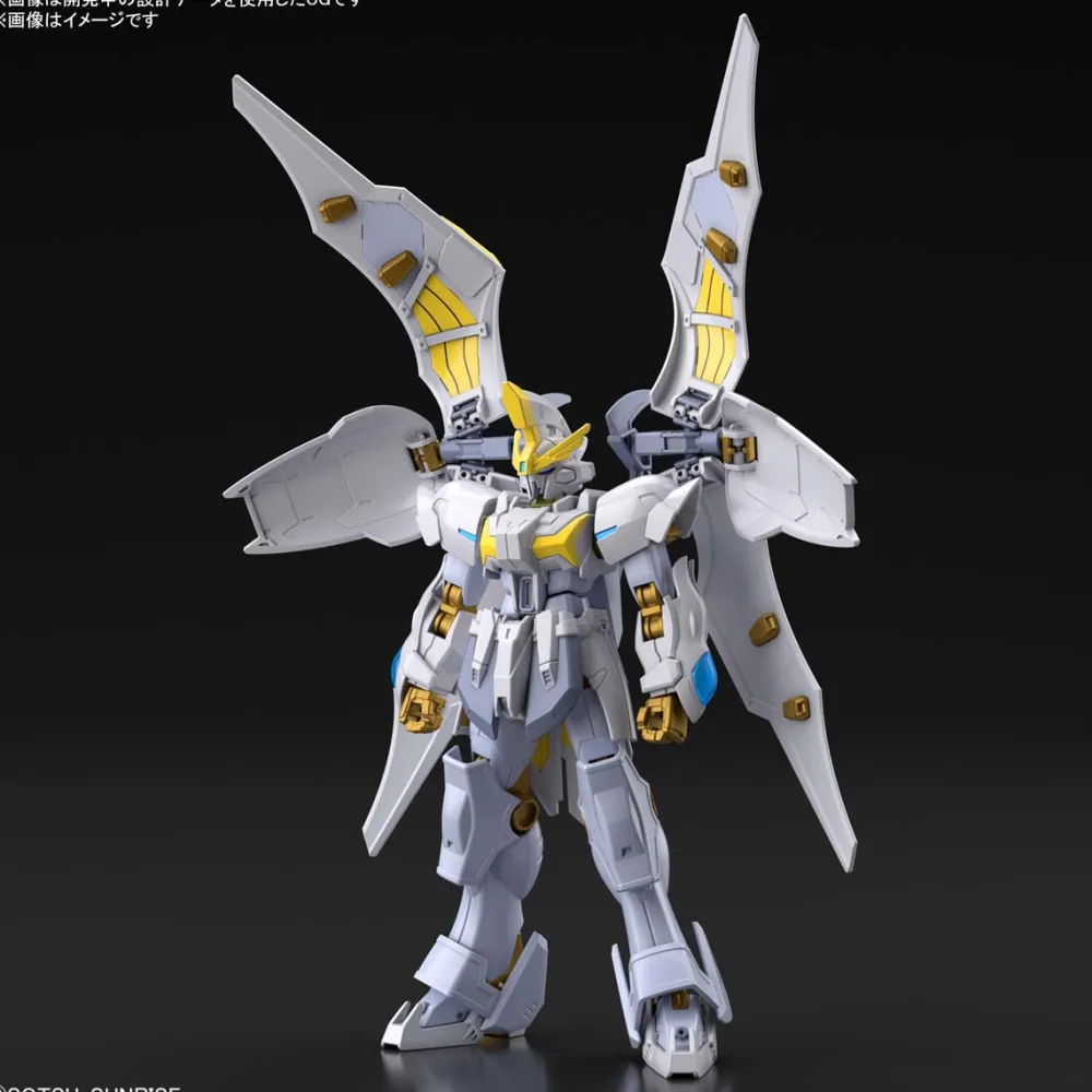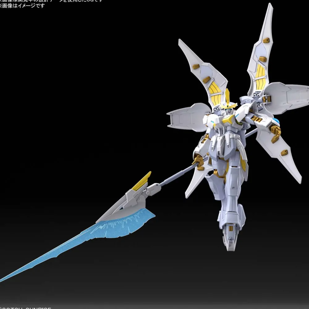 Le Gundam Live Lance Heaven est moulé en pièces plastiques blanches et dorées pour donner un aspect angélique à la combinaison mobile.