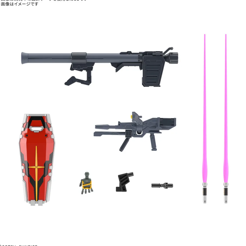 Sa coloration distinctive autour de la tête et du torse, ainsi que le design des côtés de la tête, qui le différencient du Gundam rouge, sont fidèlement reproduits.