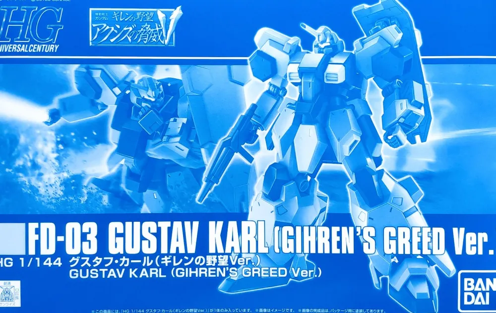 Le High Grade Universal Century HG 1/144 GUSTAV KARL (GIHREN’S GREED Ver.) est un kit à l’échelle 1/144 sorti en 2019, en exclusivité pour la boutique en ligne de Bandai Hobby.