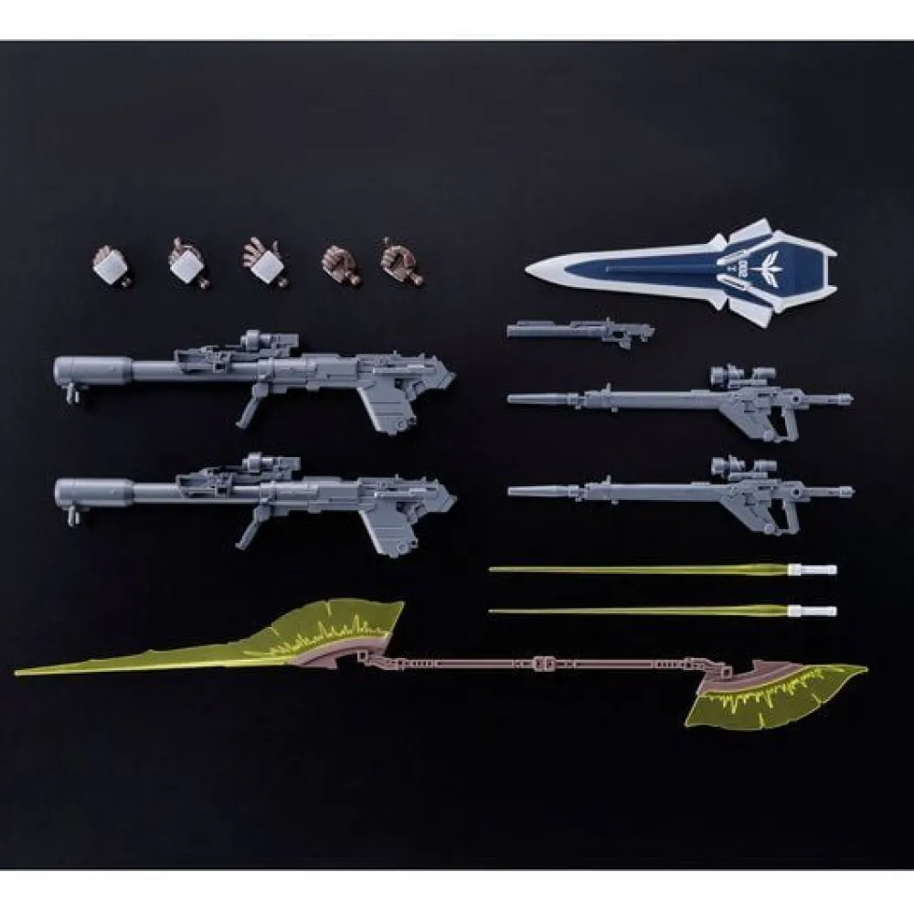 Deux ensembles de fusil à rayons et de bazooka sont inclus, qui peuvent être équipés par Sinanju Stein avec ses deux mains.