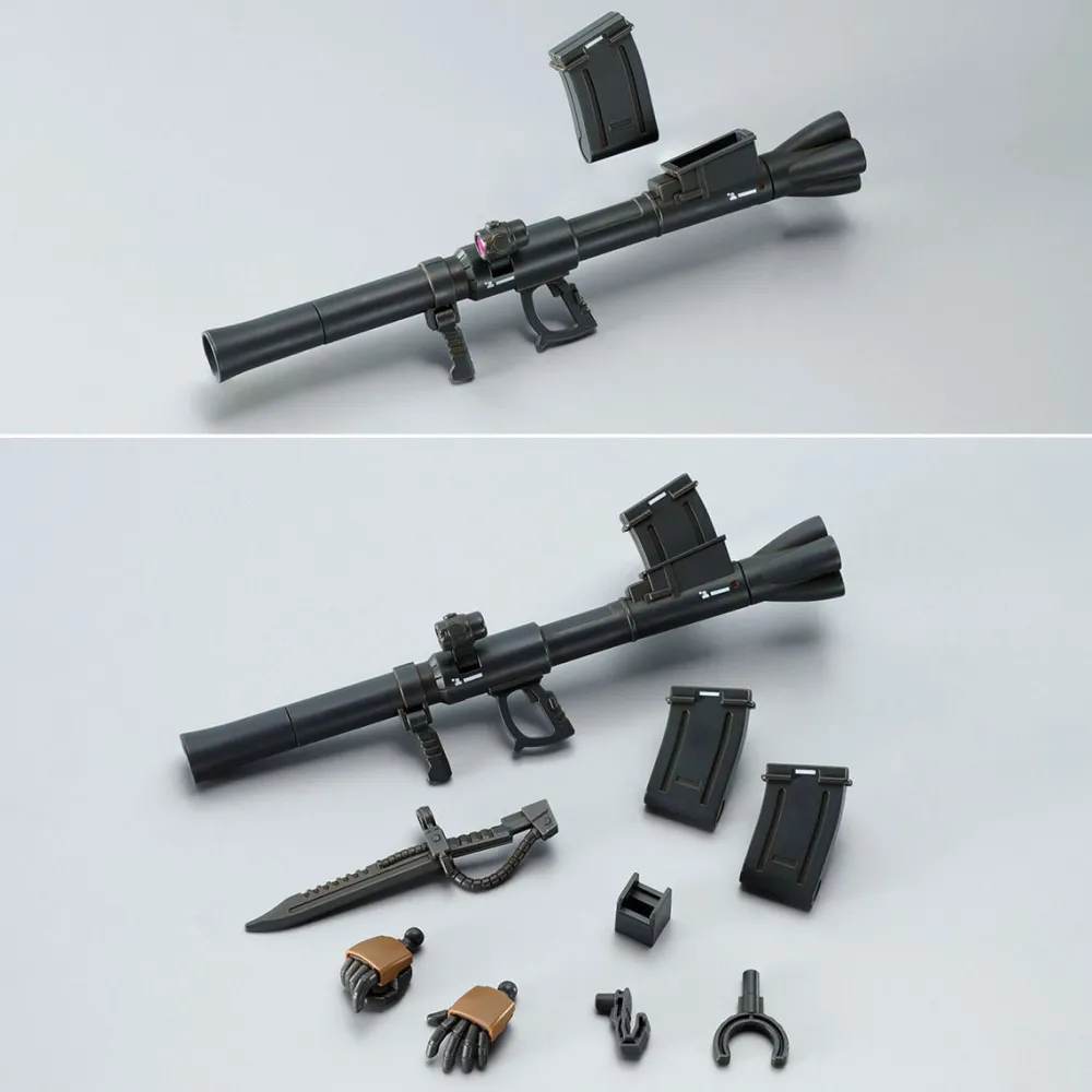 Le kit est doté d’un nouvel équipement et d’un ensemble de décalcomanies qui spécifient Selma Livens. Ce Zaku Surface Type est équipé d’un Bazooka B2 Type muni de deux chargeurs et d’une baïonnette (heat dagger) pour découper facilement les armures des ennemis.