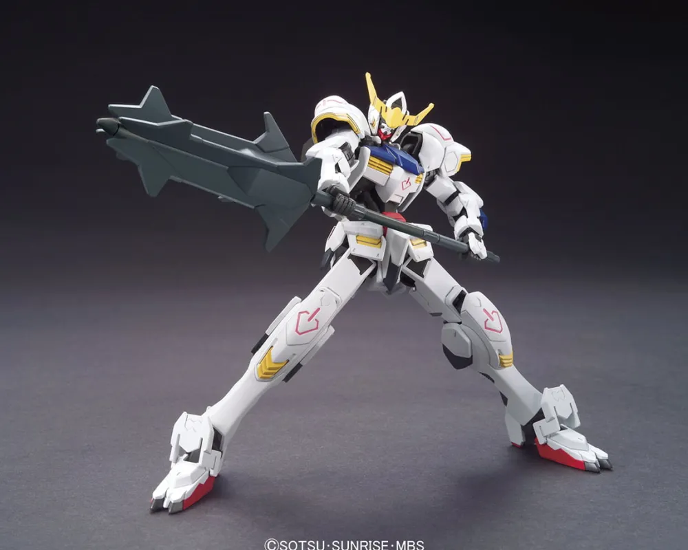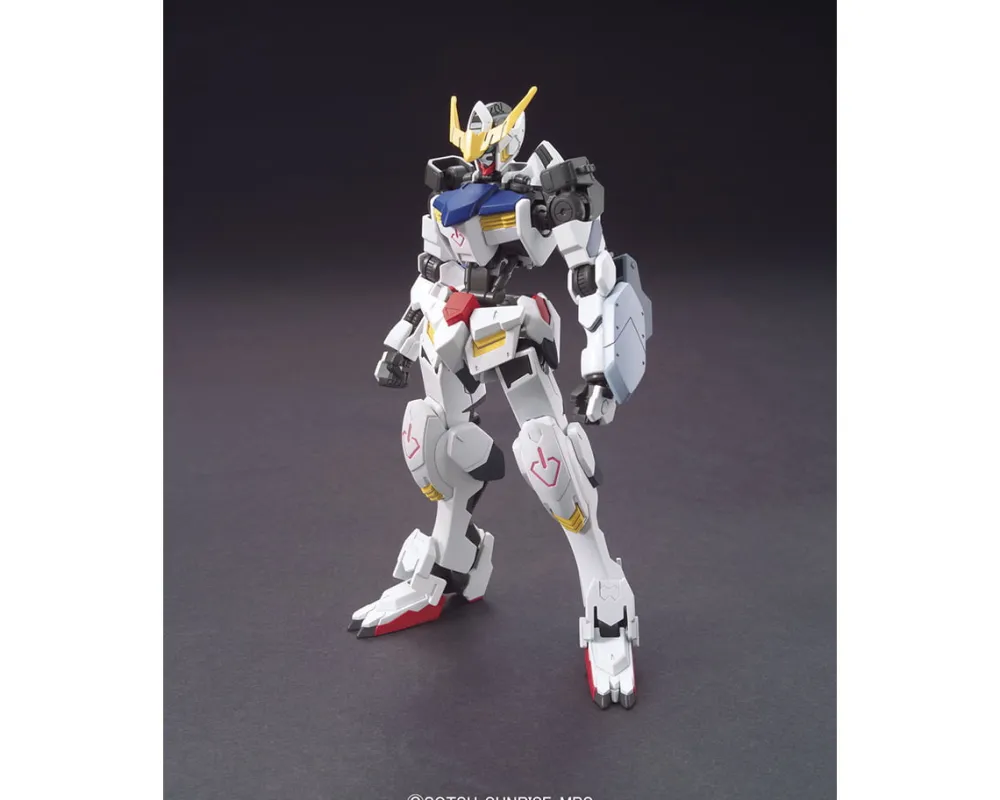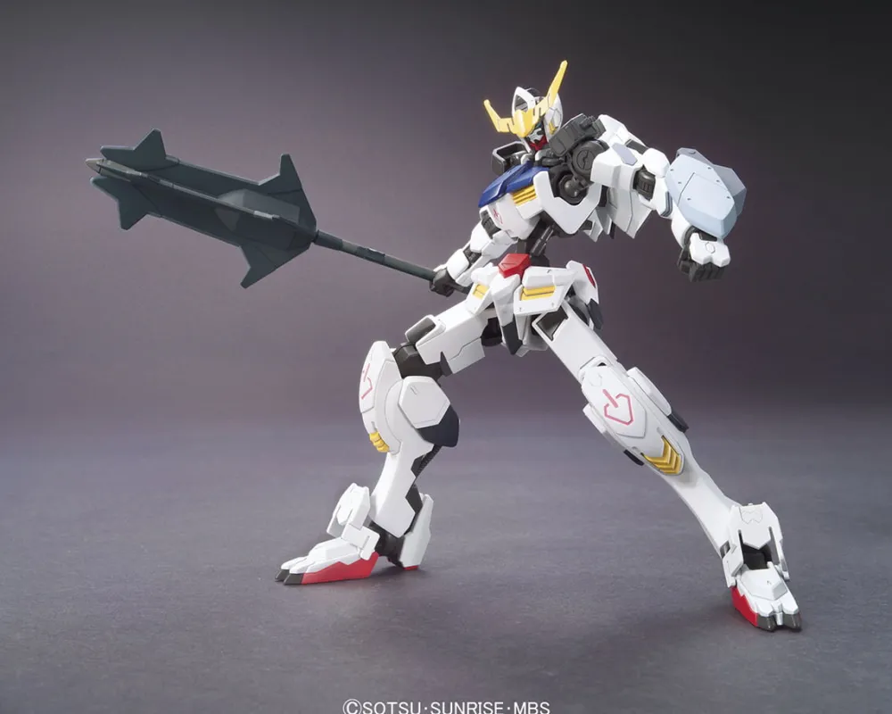 Relégué au rang de générateur après trois siècles d’abandon, le Gundam Barbatos est mis à contribution lors d’une attaque de l’ennemi Gjallarhorn dans « « . Cette version HG peut échanger des armes et des pièces d’armure avec d’autres kits de la série, et contient des pièces permettant de construire l’une des deux versions différentes du mech. Les pièces sont moulées en gris foncé, blanc, bleu foncé, jaune et rouge. Des autocollants sont inclus pour les marquages.