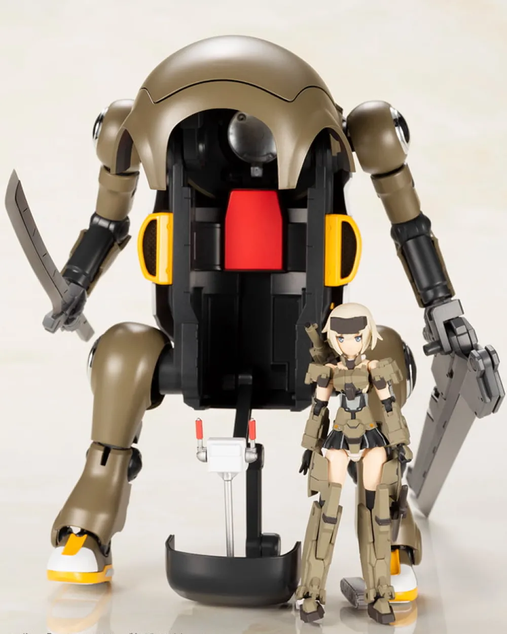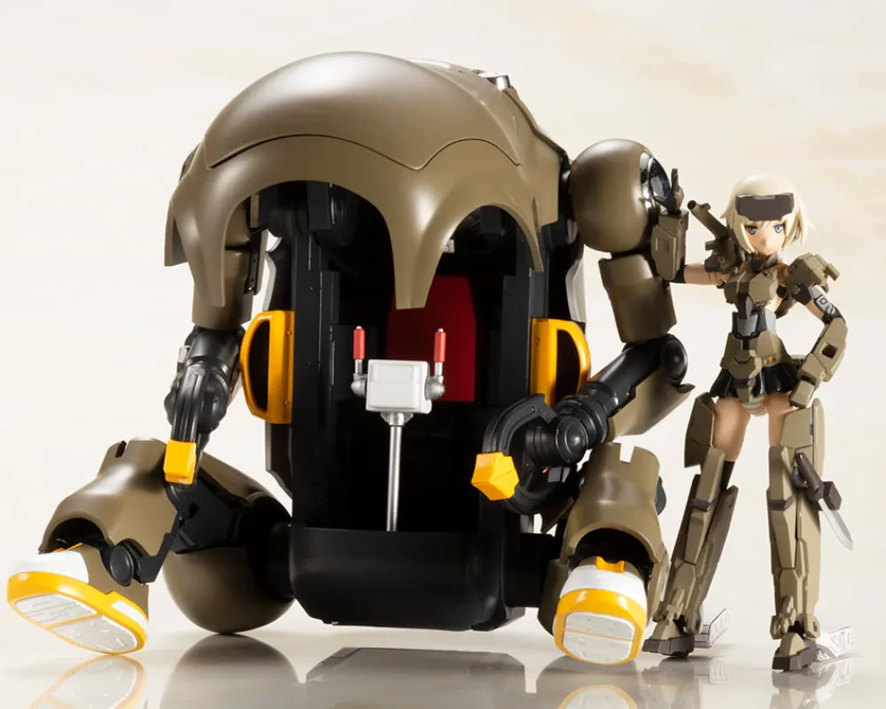 Un modèle de la série « 20 MechatroWeGo » de Hasegawa Co., Ltd. dans une variante marron spéciale assortie au Gourai à l’échelle de la main de Kotobukiya est maintenant disponible dans ce set : FRAME ARMS GIRL HAND SCALE GOURAI WITH MECHATRO WEGO BROWN !