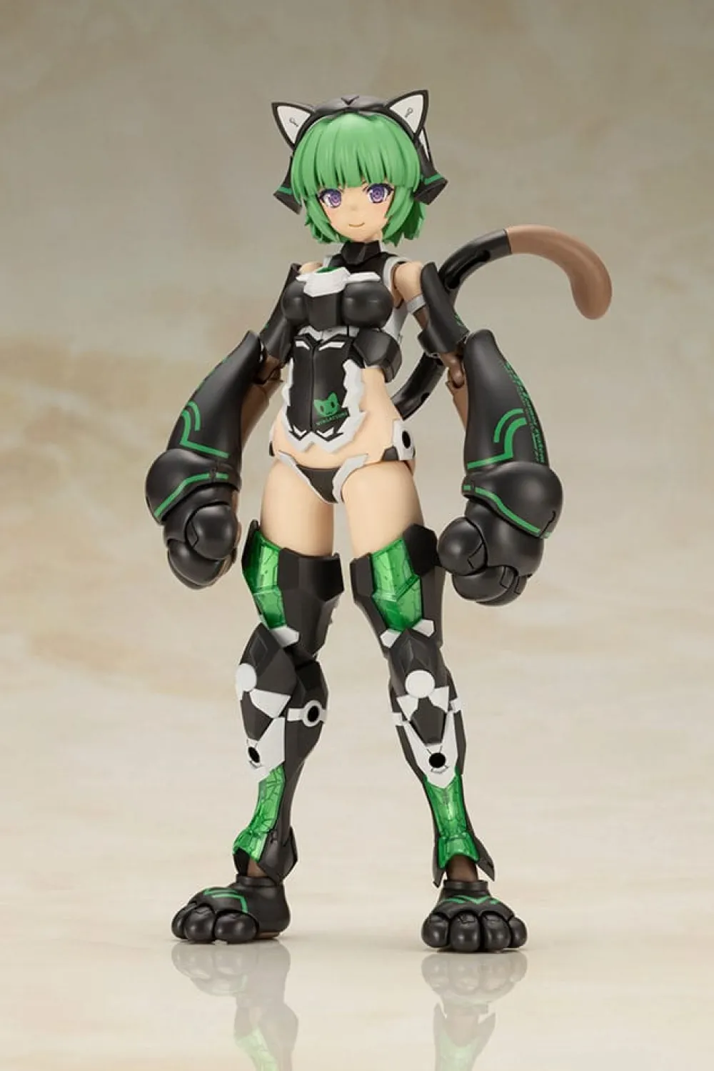 Elle est basée sur un design de mecha par ToMo et une illustration de Komatsu Eiji. Vous pouvez combiner les pièces d'armure supplémentaires et celles de l'armure de chat pour reproduire une variété d'équipements ! Les membres de l'armure de chat peuvent être assemblés avec ou sans les griffes ; les pièces de l'armure de chat peuvent être utilisées comme des mains de chat en réorganisant les parties. La queue présente quatre points d'articulation pour la rendre plus expressive ; en plus des pièces régulières pour la base de connexion de la queue, des pièces compatibles avec la base ronde simple incluse sont également fournies, ainsi que des pièces compatibles avec la nouvelle Flying Base (vendue séparément). Ses trois visages interchangeables imprimés au tampographe incluent une expression normale, un visage endommagé et un visage criant. Certaines parties de son armure sont moulées en matériau transparent, et les motifs du mecha sont gravés à l'arrière. Deux ensembles de chaque épée de type odachi "Tenkai" et de wakizashi "Satsuga" sont inclus ; son casque peut être construit en version petite ou grande. Ses articulations de poitrine et d'épaules peuvent être tirées vers l'extérieur pour permettre une large gamme de mouvements ; le mouvement coulissant des articulations des hanches et l'articulation extensible dans la cuisse contribuent également à une grande liberté de mouvement sous la taille. Des décalcomanies à l'eau sont incluses pour ses yeux et ses marquages, et comme il y a des ports de 3 mm dans ses bras et ses jambes, elle peut utiliser des armes des séries "M.S.G" et "Frame Arms" également ! Commandez-la pour votre collection dès aujourd'hui ![Taille de la figurine] : Environ 16 cm[Matériaux] : PS, PE, ABS, POM, PVC