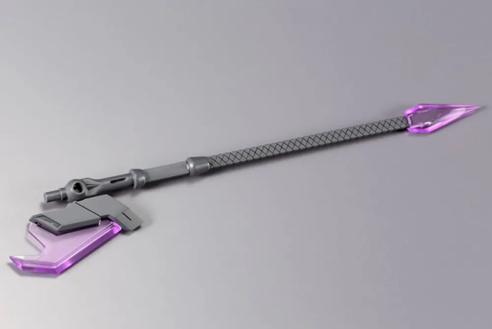 - Les pièces incluses peuvent être utilisées et réarrangées librement, permettant à cette unité d’être transformée en une grande variété de modes tels qu’une hallebarde, une lance, des lames doubles, un fusil à lame et une hache courte.