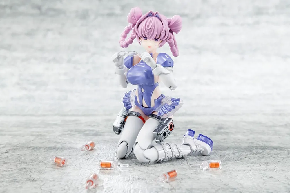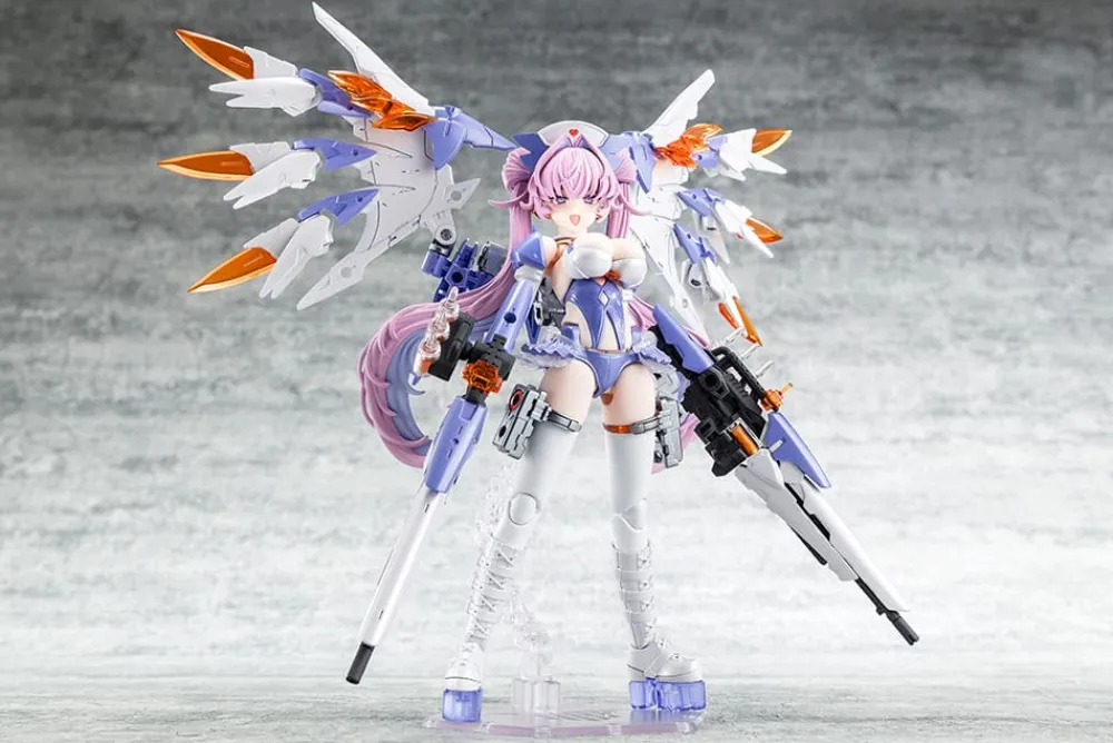 Desire Maiden Medic est le deuxième modèle d'une nouvelle série compatible avec les corps "Block 2", créée par les concepteurs de "Megami Device" ! Le design du personnage est le fruit d'une collaboration entre le développeur de longue date des motifs des yeux, Amama, et son équipe, associés à Tasuku, le designer mécanique de "Buster Doll".Inspirée par une infirmière, Desire Maiden Medic arbore des éléments tels qu'une coiffe d'infirmière et des ampoules médicales. Ses délicates couettes longues correspondent parfaitement à son caractère apaisant et expressif ; elle est fournie avec des lunettes moulées en pièces transparentes !Elle est équipée de nombreuses pièces inspirées par l'héroïsme médical, incluant des ailes géantes réalisées en pièces transparentes et un fusil médical qui tire des ampoules.Cette figurine inclut les premières lunettes transparentes de la série "Megami Device" !Des accessoires stylés tels qu'un costume de style "bondage" et des bottes longues compatibles avec le corps Block 2 sont inclus.Ses longues couettes peuvent être remplacées par des pièces de tresses en anneaux pour faciliter la prise de poses.Trois visages pré-imprimés, illustrés par Amama, sont inclus.Vous pouvez profiter d'un changement radical de sa silhouette en réarrangeant ses parties, passant du "Body Mode", qui permet d'apprécier ses proportions pures, au "Armed Mode", où diverses armures et armes sont équipées.L'incroyable amplitude de mouvement du corps de la "Série Machinica" permet des poses naturelles, comme tenir ses armes ou une position assise.Une variété d'armes et de joints est incluse, vous permettant d'imaginer et de mettre en scène diverses situations de combat.Un support dédié est inclus.Des joints de 3mm de diamètre situés à diverses parties du corps, ainsi que des pièces de tête compatibles, permettent une utilisation avec les articles existants des séries "M.S.G", "Frame Arms", "Frame Arms Girl", "Hexa Gear", "Sousai Shojo Teien", "Arcanadea" et "Megalo Maria".