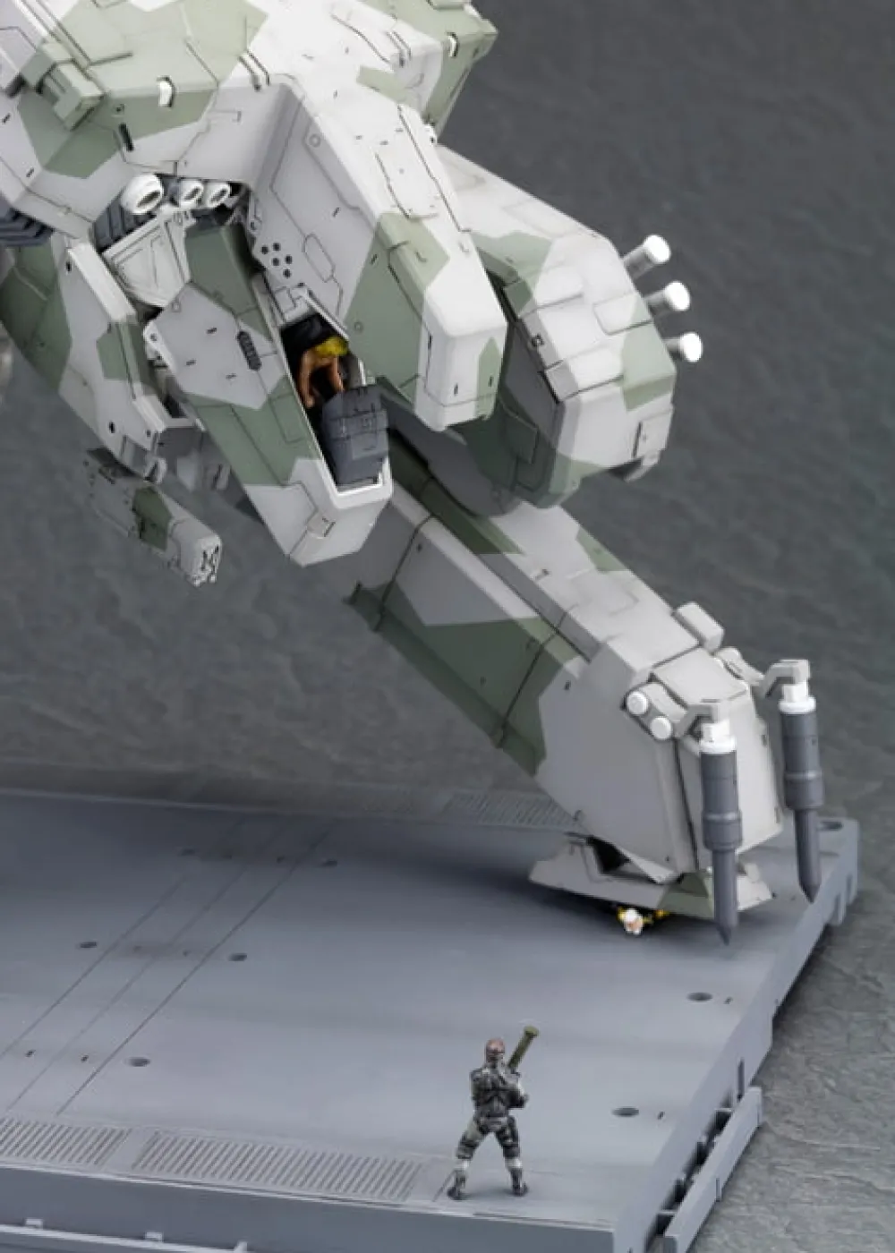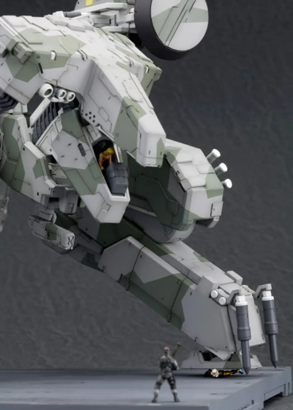 Metal Gear Solid est un jeu d'action furtif réalisé par Hideo Kojima. Le jeu a été développé par Konami Computer Entertainment Japan et publié pour la première fois par Konami en 1998 sur la PlayStation.Il est largement considéré comme l'un des plus grands et des plus importants jeux de tous les temps, et est annoncé comme le jeu qui a rendu le genre furtif populaire.Il s'agit du troisième titre canonique de la série Metal Gear, la suite directe de Metal Gear et Metal Gear 2 : Solid Snake.REX était le Metal Gear ultime, car il était non seulement capable de lancer une arme nucléaire depuis et vers n'importe quel point du globe, mais aussi de le faire de manière "indétectable" et "intraçable".Tous les Metal Gear précédents n'étaient que des systèmes terrestres mobiles de lancement de missiles nucléaires, un peu plus que l'équivalent terrestre des sous-marins lanceurs d'engins.Le REX utilisait un canon à rail, qui tirait des projectiles beaucoup plus petits sans propergol chimique et contenait une technologie furtive - des facteurs qui le rendaient pratiquement invisible aux radars.Il porte ainsi un coup fatal au principe de "non première frappe" de la destruction mutuelle assurée - quiconque le contrôle peut lancer une attaque nucléaire sur n'importe quelle cible à n'importe quel moment, sans avertissement avant l'impact.En outre, ses missiles sont suffisamment puissants pour détruire des bunkers souterrains, une leçon qui a été tirée de la guerre du Golfe.Attention , les photos présentent un modèle peint.Retrouvez les modèles de la série Metal Gear [ ]