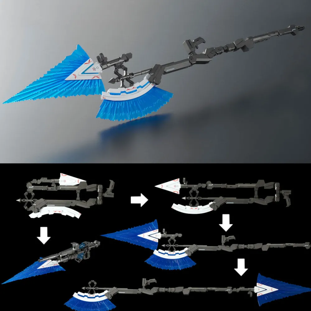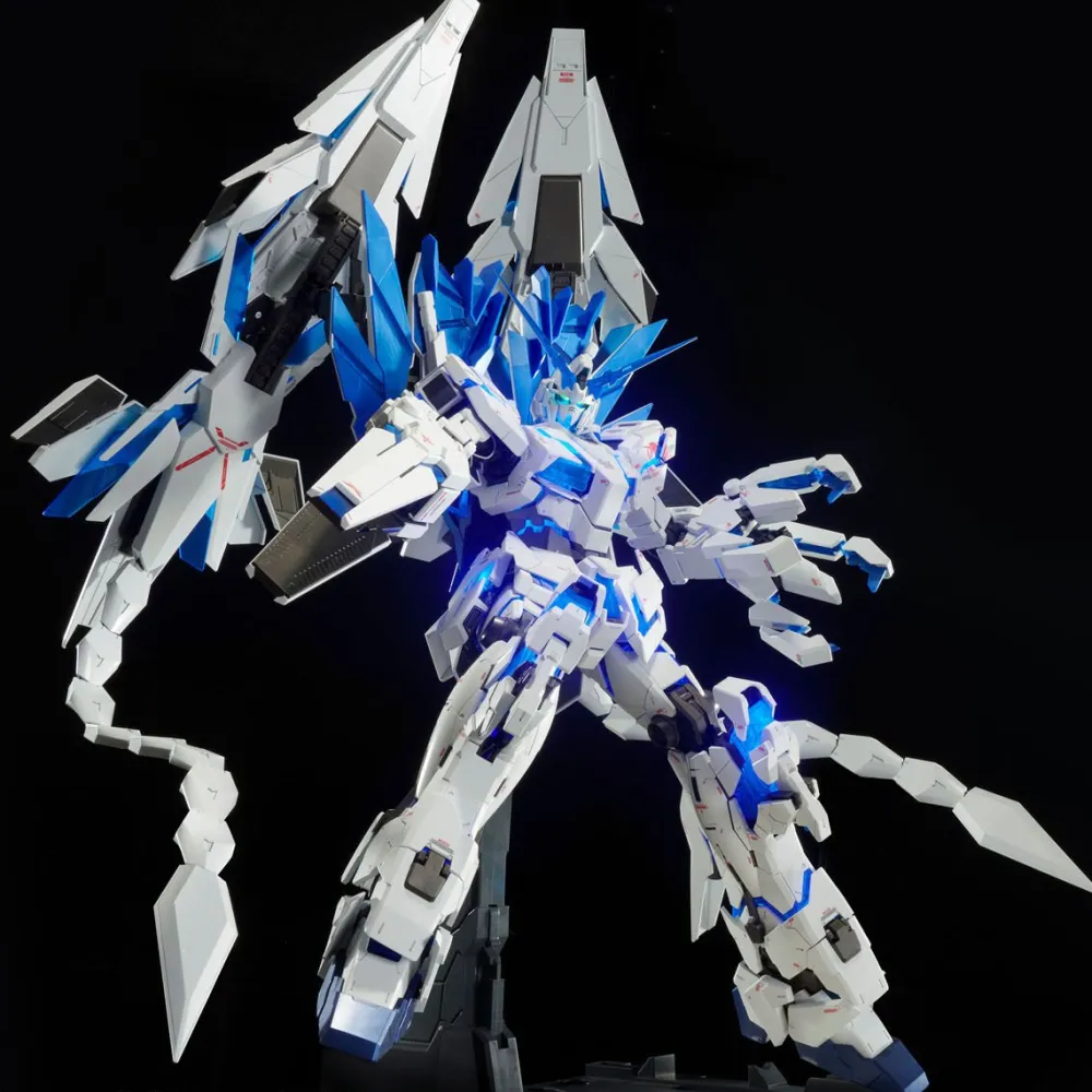 De l’Armed Armor VN et BS de Banshee à l’Armed Armor DE de la version Narrative de Unicorn Gundam Phenex avec des queues stabilisatrices.