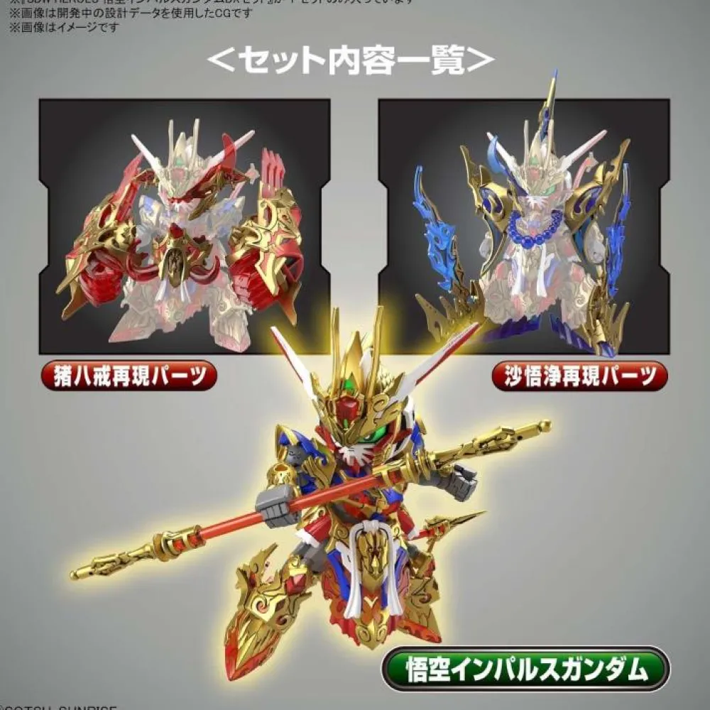 Le kit SDW HEROS WUKONG IMPULSE GUNDAM DX SET vous permet de fabriquer les différente formes du Gundam Wukong Impulse :